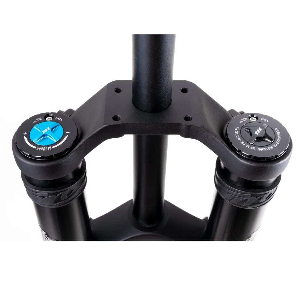• New 2 bolt drop crown features increased head tube length capability with 29″ wheels.