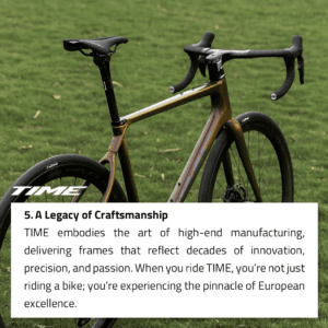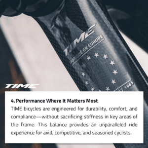 Siden 1987 har Time vært en pioner i sykkelverdenen, og med sin innovative tilnærming og ekspertise innen karbonfiberteknologi har de blitt et pålitelig navn for syklister over hele verden. Enten du er en erfaren rytter eller nettopp har begynt å utforske sykling, har Time noe unikt å tilby deg.